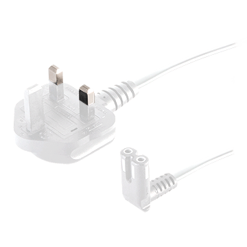 AC Power Cord United Kingdom, C7 for C8 inlet Flat Right Angle, 0.75 mm, 3 M, White